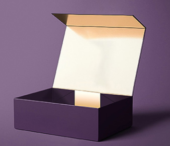 地蓋包裝盒是有上蓋、底盒、內托等組成,一般為上大下小扣合使用。也有連體天地蓋,連體的區別是上蓋和底盒一樣大,支口由背接條、絲帶銜接,工藝相對復雜。其優點是質感佳,也可操作雙層厚度增加堅固性,適合精品禮盒,如服飾、首飾或食品禮盒等,可提升產品形象。